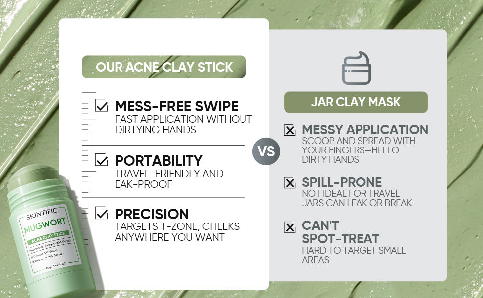 Calm, soothe acne, and reduce skin redness. Continuous usage of this clay stick would help shrink pores, regulate sebum production,  and reduce bumps