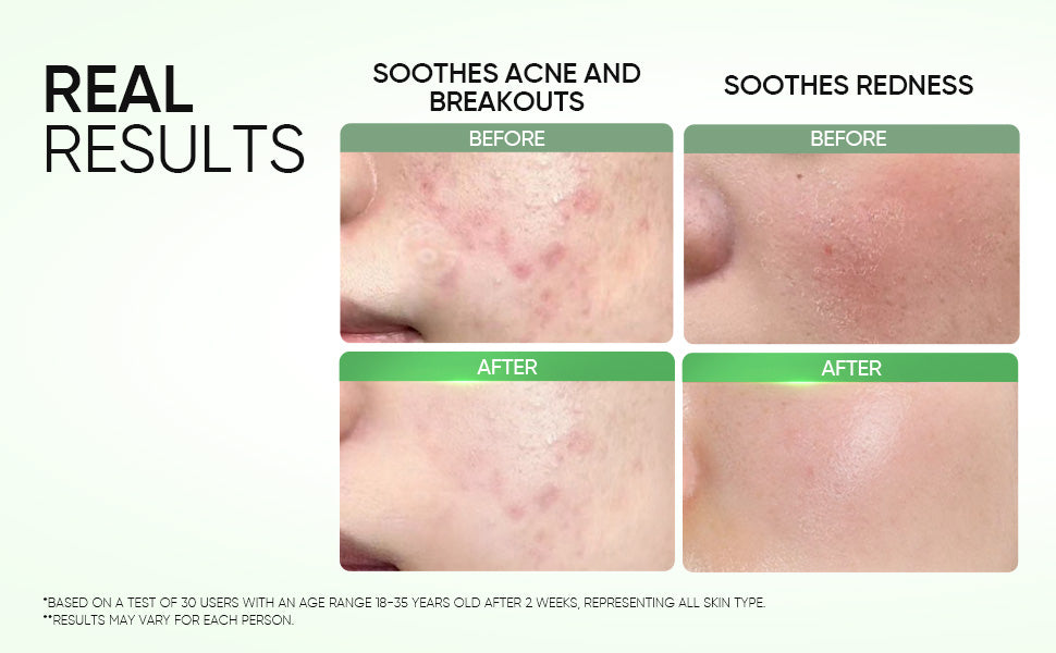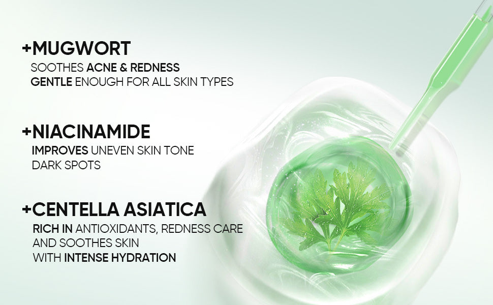 Mugwort and Centella calm visible redness, irritation, and heat from acne-prone skin.